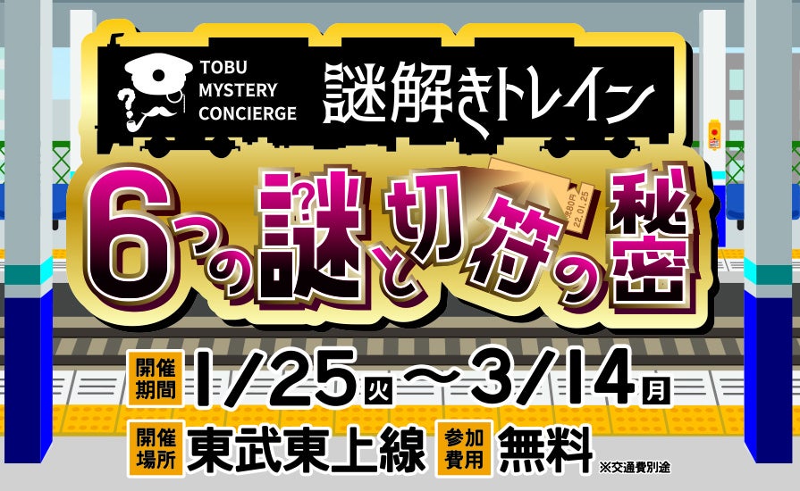 東武鉄道では、2022年1月25日(火)から2022年3月14日(月)までの期間、東武東上線において、TOBU POINTアプリを利用した非接触・分散型謎解きイベント「謎解きトレイン 6つの謎と切符の秘密」を実施いたします。