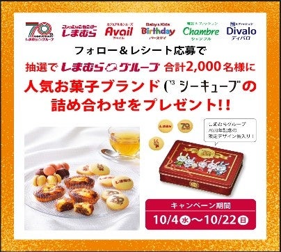しまむら70周年を記念して、10月4日(水)~10月22日(日)の期間中しまむらグループ各事業でノベルティプレゼントのキャンペーンも実施します。