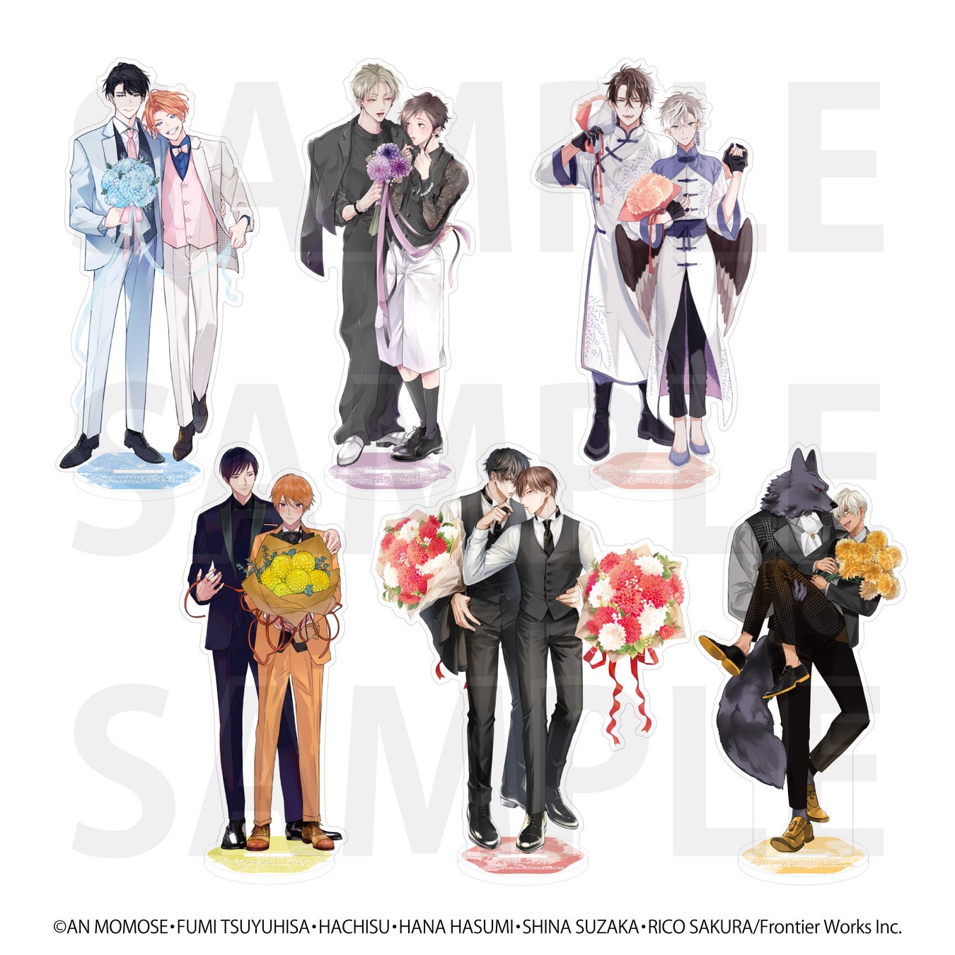 ラインナップ:「幼馴染じゃ我慢できない/百瀬あん」、「好きの音色は聴かないで/露久ふみ」、「甘くて熱くて息もできない/蜂巣」、「契約コハビテーション/須坂紫那」、「おやすみ、いとしい小鳥様/佐倉リコ」、「レムナント-獣人オメガバース-/羽純ハナ」[全6種]