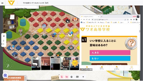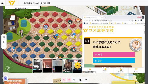 オープンスクールをはじめ、ワオ高校が主催するイベントは、このバーチャルキャンパスにオンラインでご来校いただき、本当の授業さながらの学び体験を楽しんでいただけます。