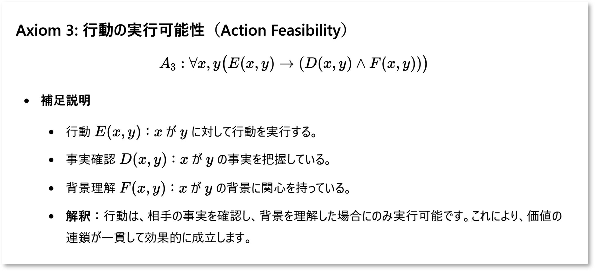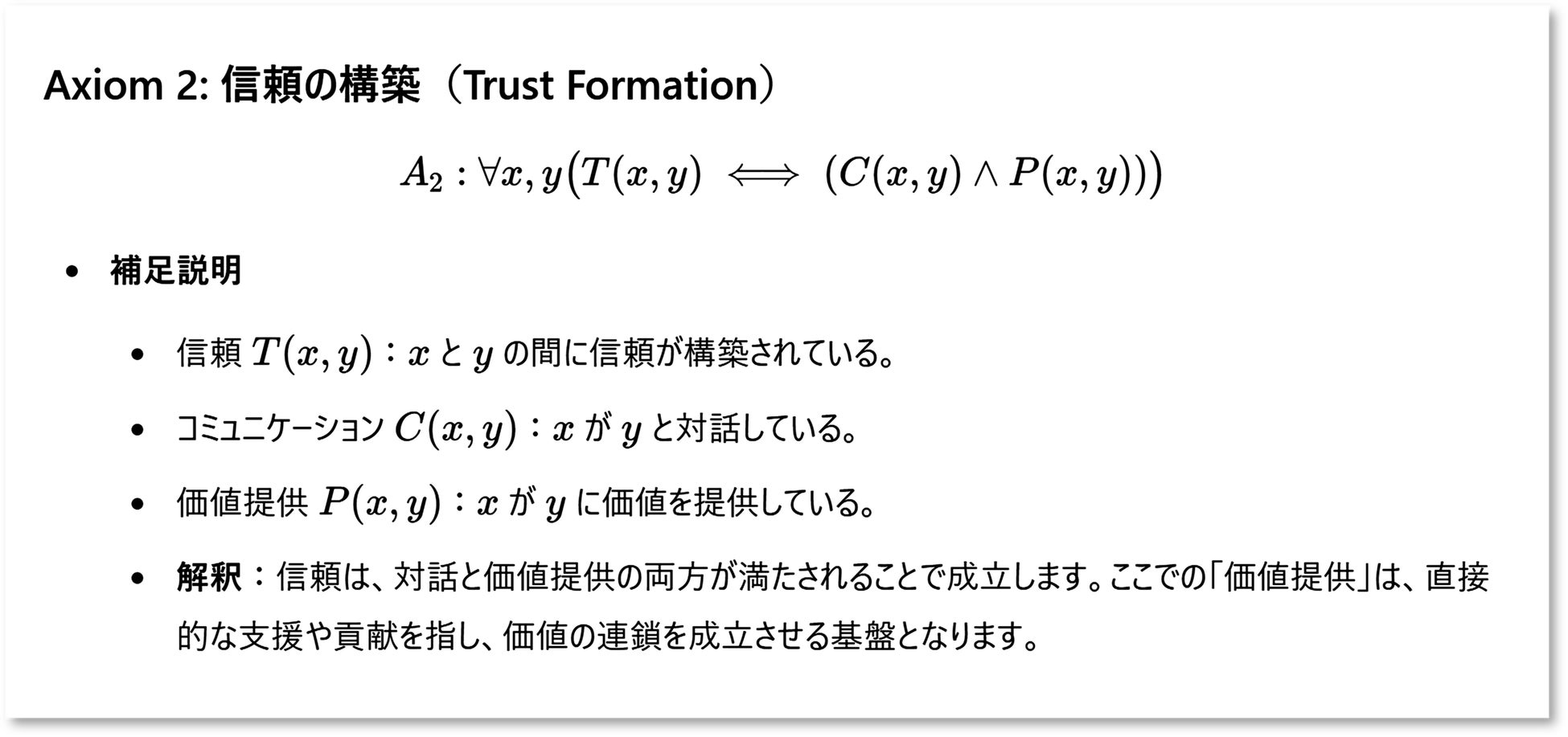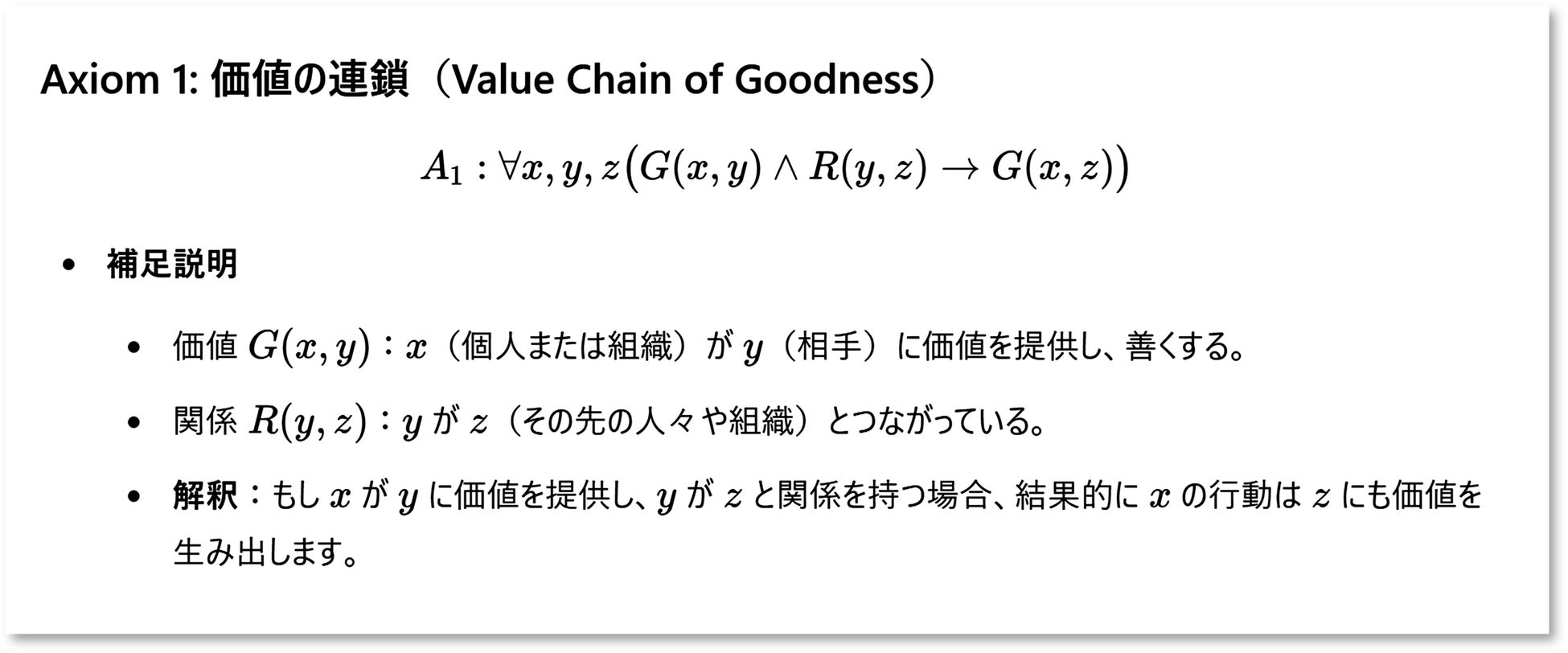 このモデルは、数理論理学に基づく厳密なフレームワークを用いて、「相手を善くする」という価値観を組織全体に定着させます。それは短期的な効率ではなく、持続可能な信頼と協力の構築を目的としています。この価値観を実践することで、次の成果が得られます: