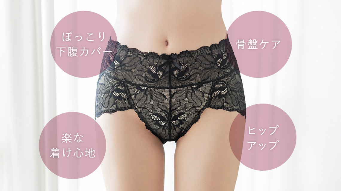 「体型の悩みを解決できる商品が欲しい」「ショーツ兼用のガードルが欲しい」「可愛い補正下着が欲しい」というお客様の声を受け、この度、"補正下着に見えない" ガードルショーツ『ピオニーレース骨盤ガードルショーツ』を発売いたします。