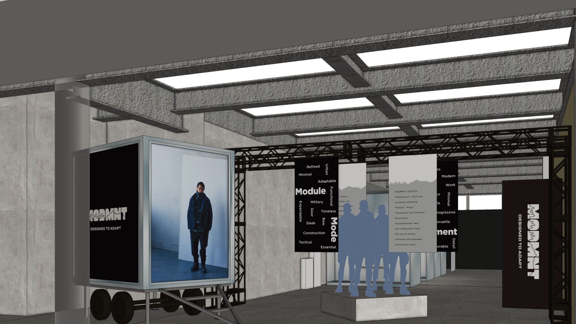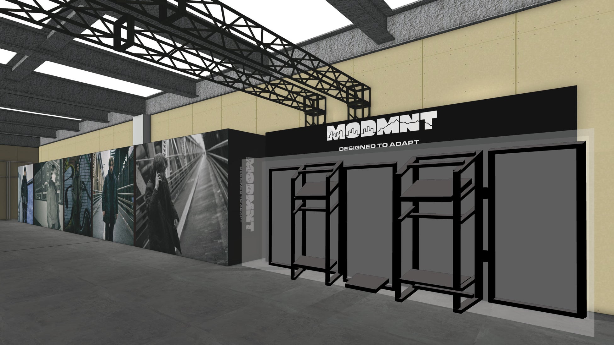 また、1stデリバリーの前日である2025年10月9日(木)には、NANGA SHOP HARAJUKUにて先行販売を開始。店内をMODMNTをイメージした什器とビジュアルでジャックし、ソリッドでアーバンなブランドの世界観を感じる仕様に。