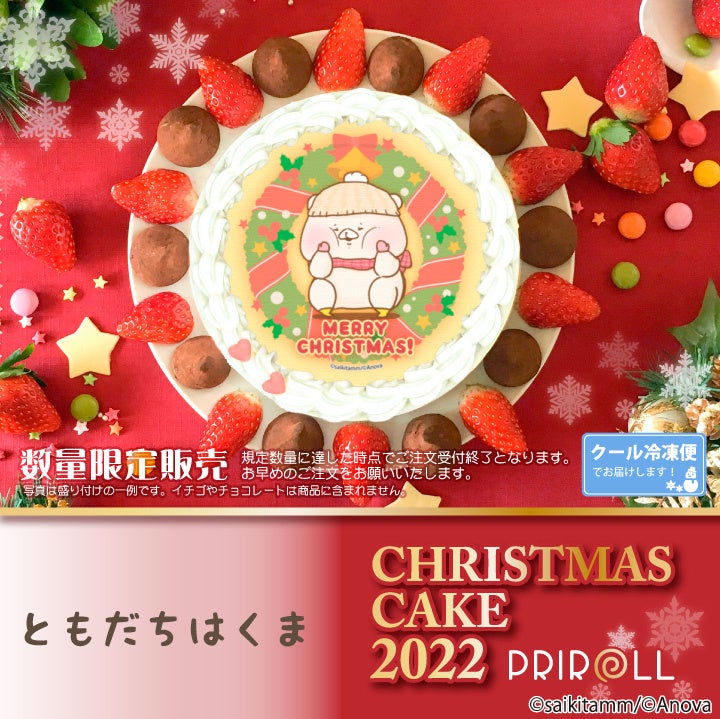 「プリロール」を運営する株式会社栄通(本社:東京都八王子市)は、『ともだちはくま』のクリスマス限定デザインのプリントケーキを2022年10月21日(金)より予約受付開始いたしました。