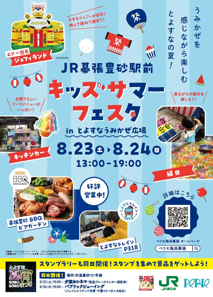 商業施設「PERIE」(ペリエ)を運営する株式会社千葉ステーションビル(本社:千葉市中央区)は、JR幕張豊砂駅前「とよすなうみかぜ広場」において、2025年8月23日(土)・8月24日(日)の2日間、夏休みの週末を家族で楽しめる特別企画『キッズサマーフェスタ in とよすなうみかぜ広場』を開催します。