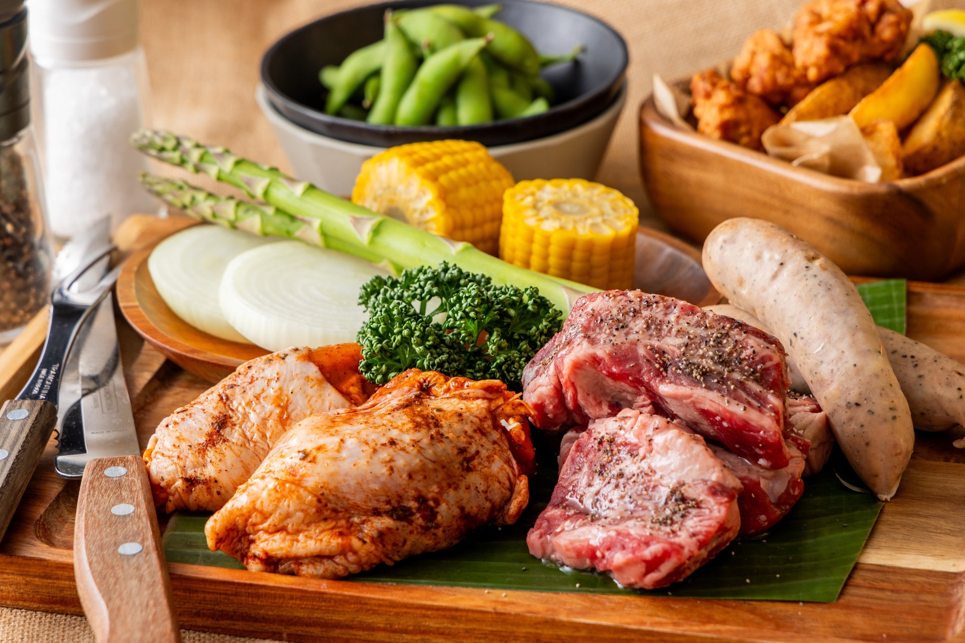 【BBQプラン例】 カジュアルBBQ 税込2,900円、ソフトドリンク&アルコール飲み放題(120分) 税込2,000円