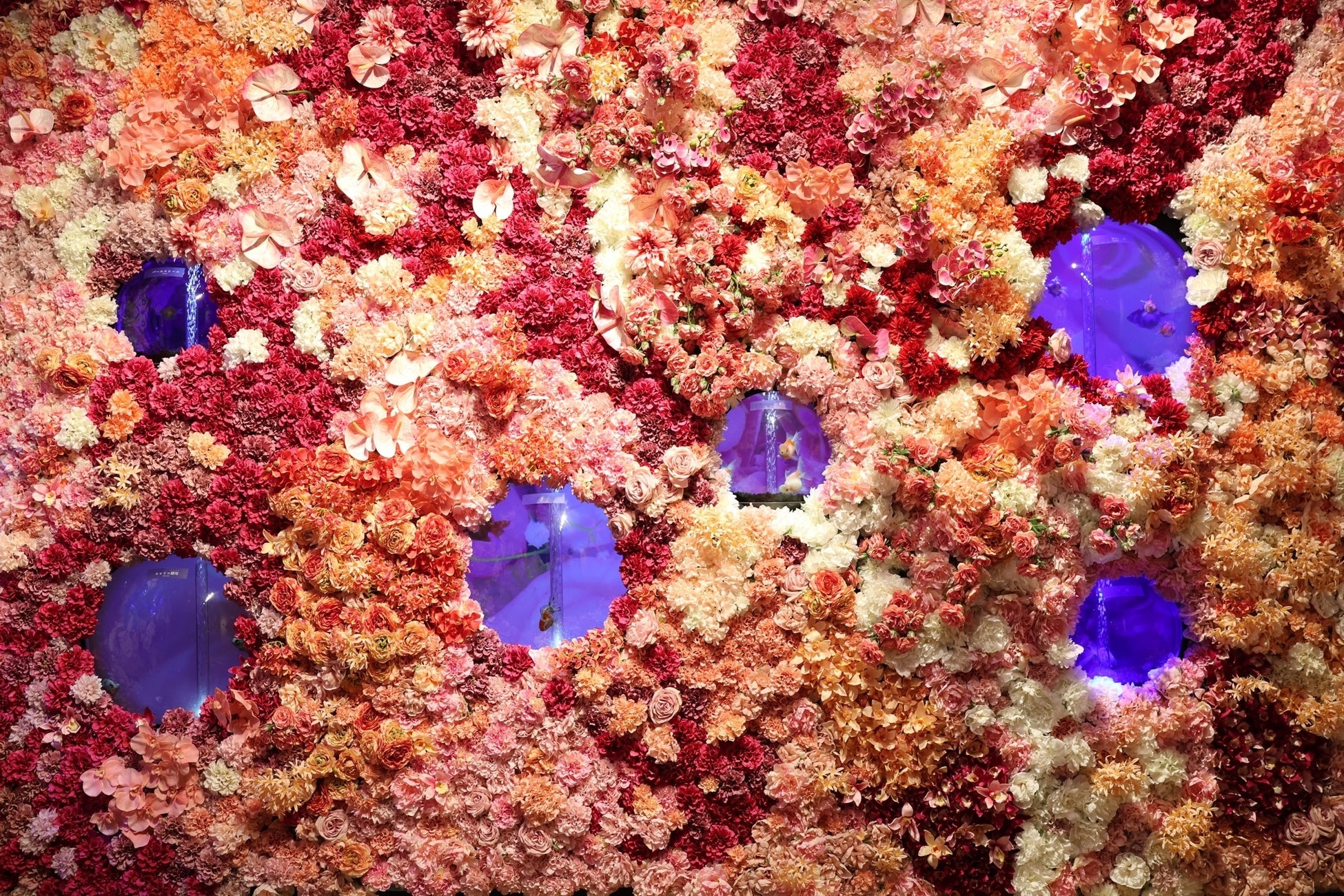 花と金魚、昇龍伝説を連想させる幻想的な空間。それはまさに戦国乱世と華やかな新しい文化が交差する、ここでしか体感できない五感を刺激する作品です。