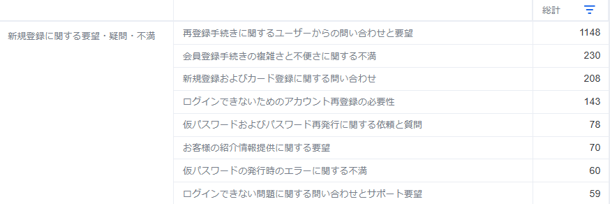 具体的には、従来の手動分析では「登録」といったキーワードベースでVOCを分類していましたが、そのキーワードが示すお客様の具体的なお困りごとの内容は手作業での詳細分析が必要でした。「Flyle」の活用により、「登録」の背景にある個別具体的な課題や真のニーズを自動的に把握・分析し、より本質的な改善に繋げることが可能となりました。
