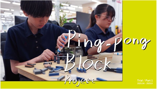 新渡戸文化学園の中学生ラボの探究メンバーは、探究学習で「身近にある環境問題をどのように解決するか」をテーマに、解決策を探っています。2024年9月、バタフライの研究開発および製造拠点、「バタフライ・テック」を訪れた際に知った余材に新たな価値と関係性を生み出すため、「Ping-pong Block Project」をスタートしました。プロジェクトでは、余材をパズルのように組み合わせてさまざまな作品が創造されています。