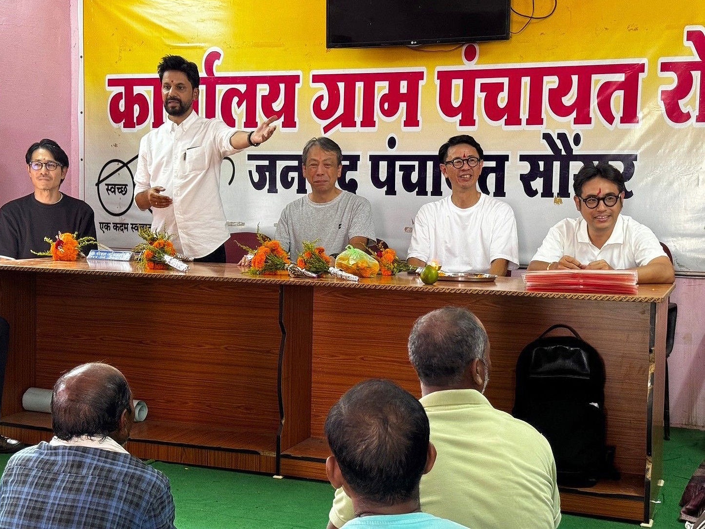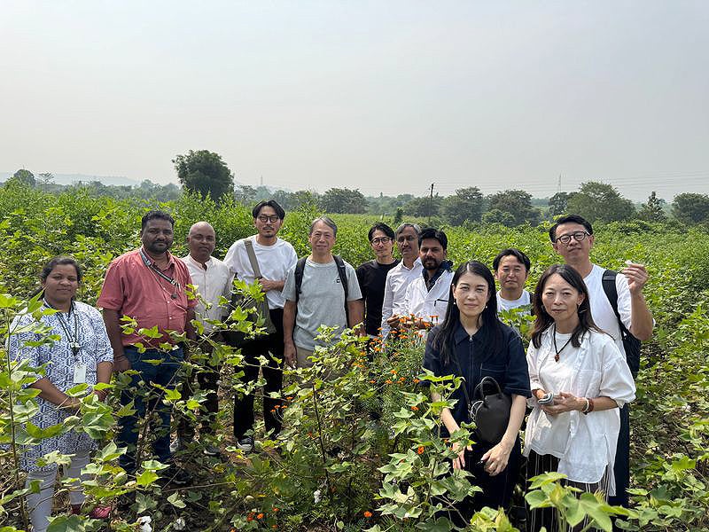 (左)アクタスでは2024年にインドの綿花農家を視察。(右)視察時には綿花農家の方々へヒアリングを行う。写真右から2番目がアクタス社長村田謙、その左がアクタス会長休山昭。
