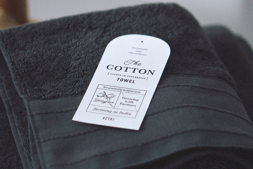 アクタスでは、1軒でも多くの農家の人々が健康な生活ができるよう、オーガニックコットンへの移行を支援するオーガニックフィールドとの協業を開始しました。オーガニック移行期のコットンを「コットン・イン・コンバージョン」として買い取るとともに、オリジナル製品を開発。その第一弾が今回のタオル2種です。