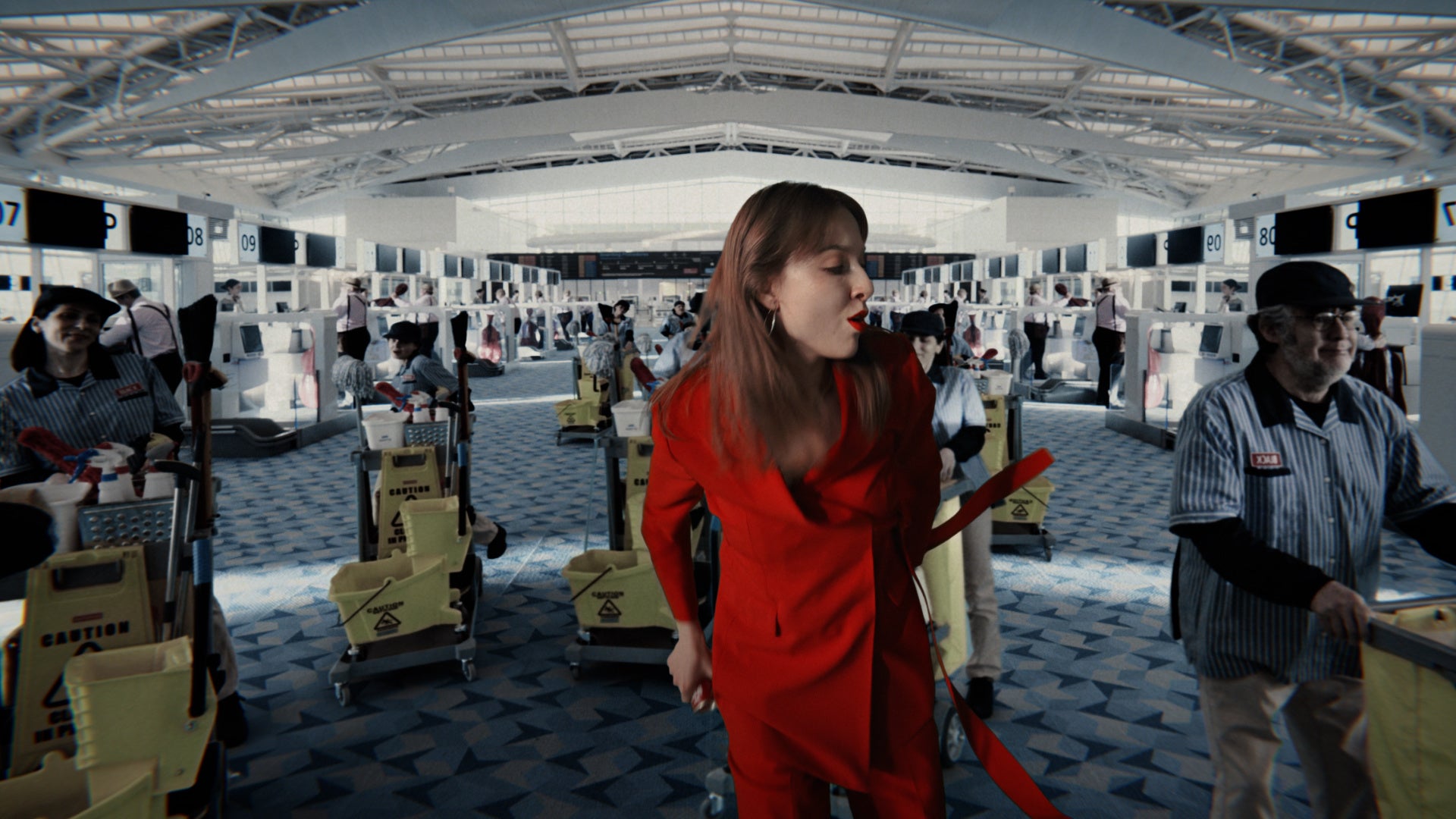 TVCMは、赤い衣装を身に纏った女性が、空港館内を闊歩するシーンから始まります。『UCC BLACK無糖 New Ground Fruity Blend』を手に持ち、使用楽曲「ZITTI E BUONI」 (読み方:ジッティ・エ・ブオーニ)のロックテイストの曲調に合わせながら激しいダンスを披露。「赤いBLACK、解禁。解キ放テ。」というコピーとともに締めくくります。