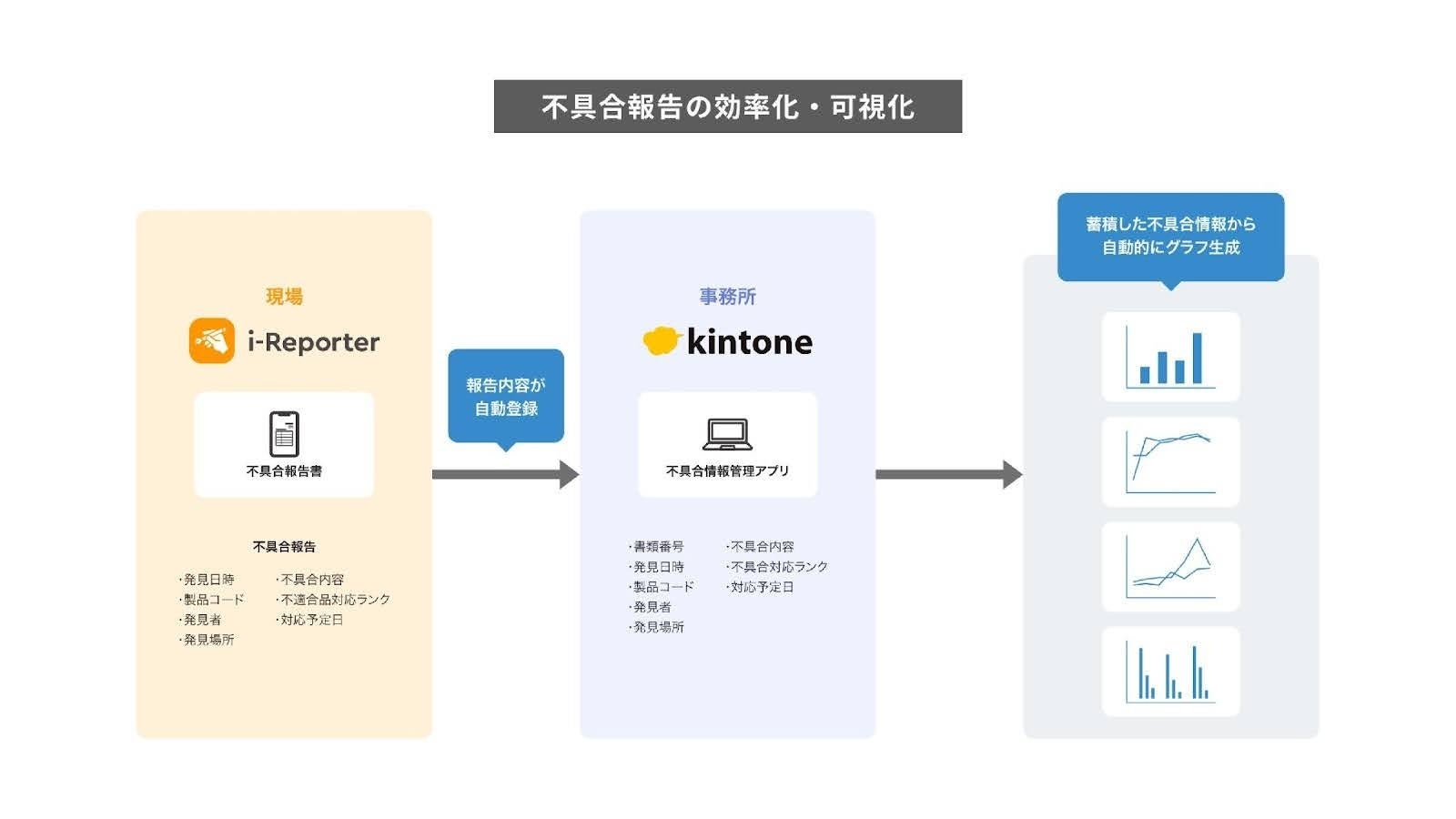 その事実を踏まえ、より多くのお客様に「i-Reporter」と「kintone」の関係性を認知いただき、両サービスを最適なシチュエーションでご利用いただき、連携することで更に現場カイゼンが推進できることをお伝えしたく、企画に至りました。