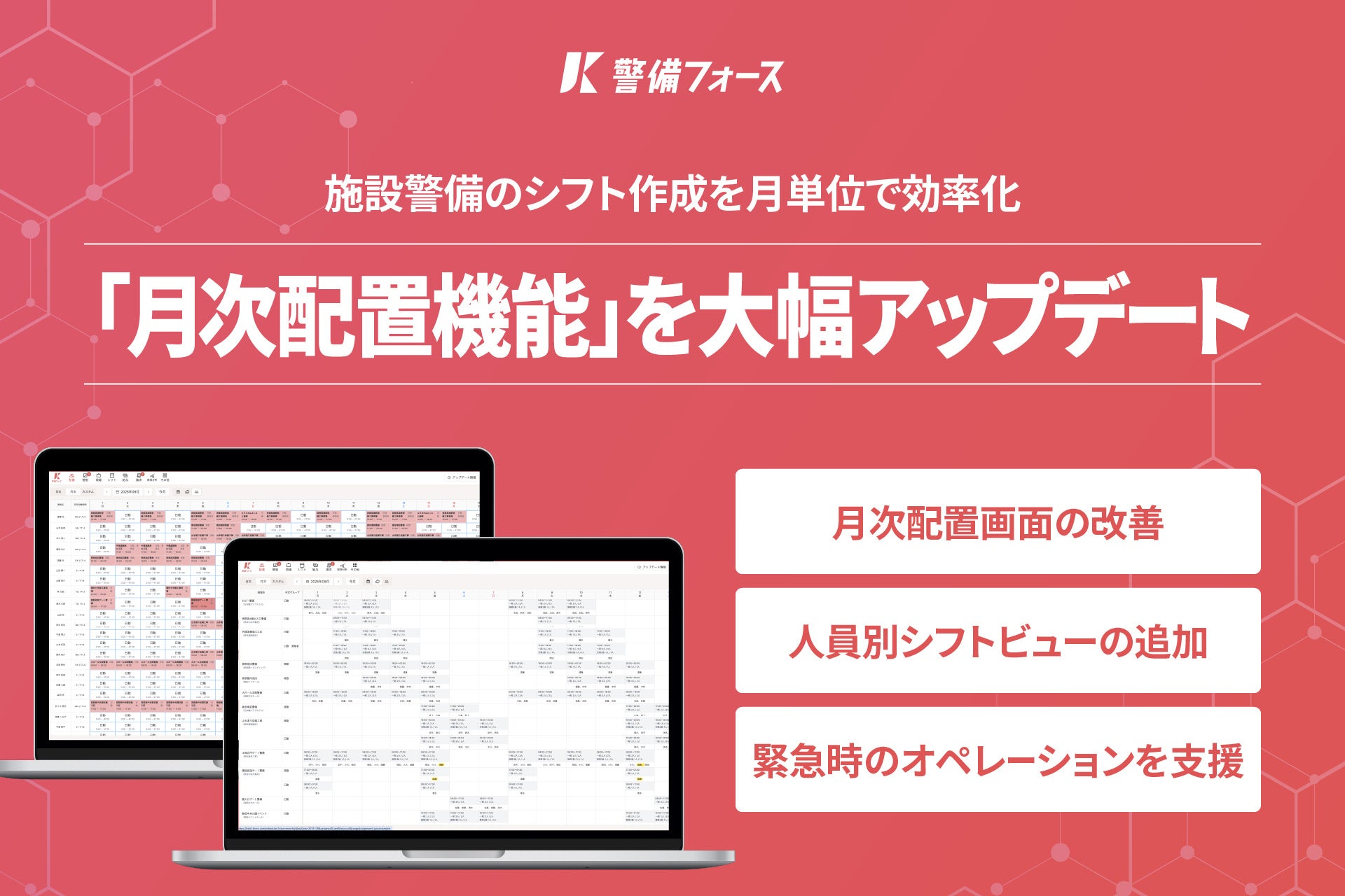 警備会社向けのオールインワンSaaS「警備フォース」を提供する株式会社メディカルフォース(本社:東京都品川区、代表取締役CEO:畠中 翔一、以下「メディカルフォース」)は、警備フォースにおいて1号警備(施設警備)向けの「月次配置機能」を大幅にアップデートいたしました。