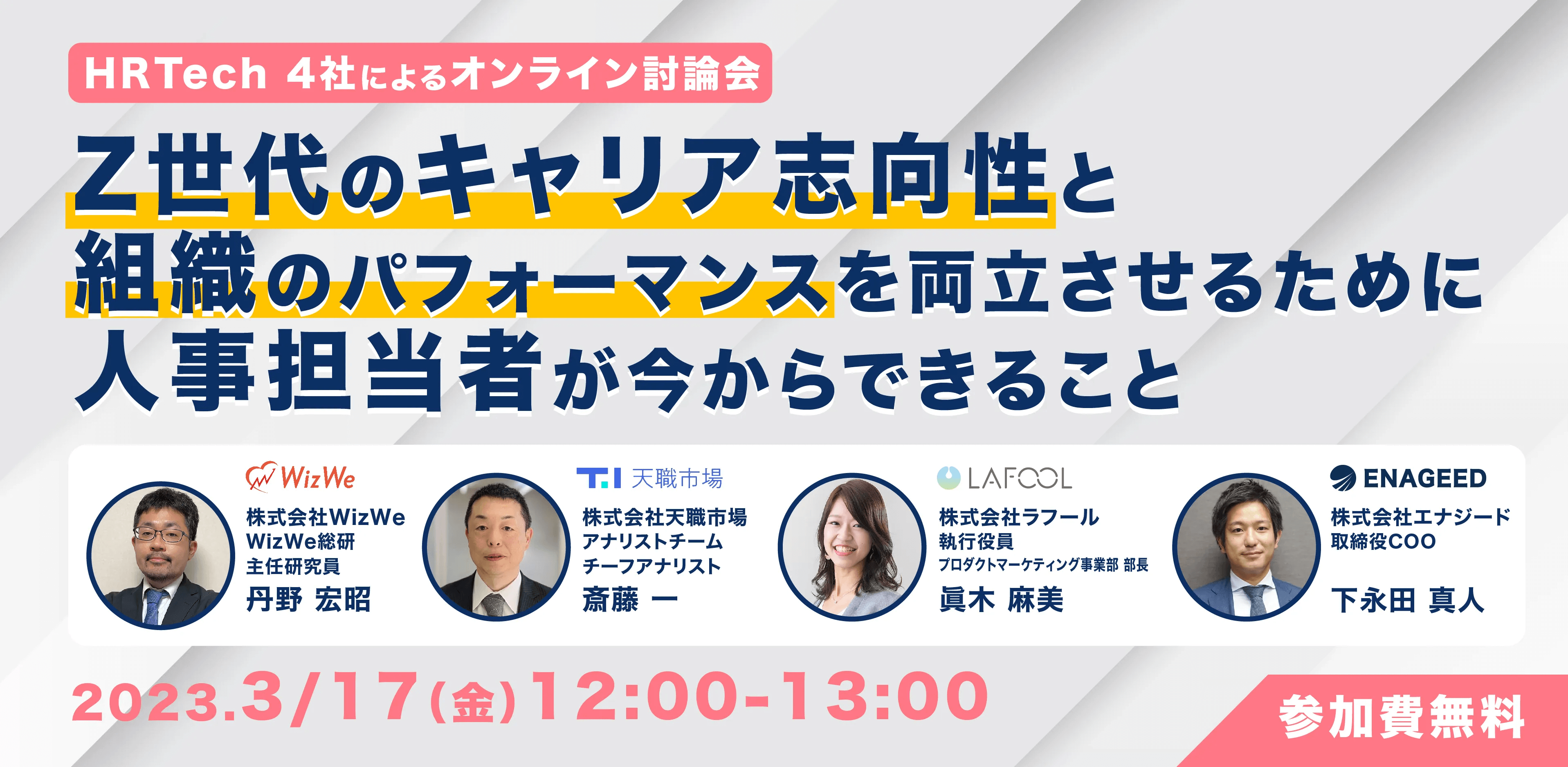 【社員採用担当者向け】Z世代との価値観の違いが組織力低下を招く?キャリア志向性と組織パフォーマンスの両立に関するオンライン討論会を実施!