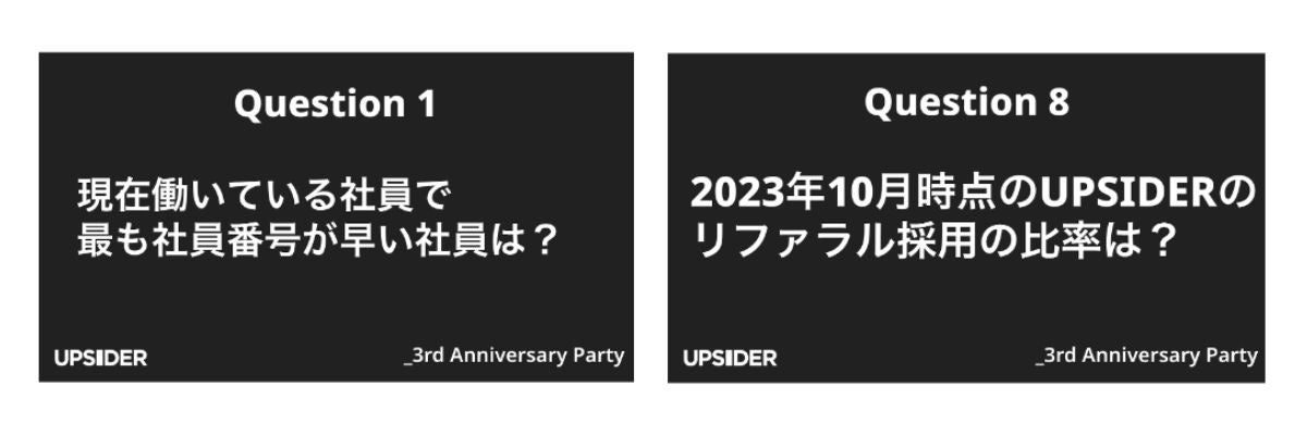 株式会社UPSIDER(以下、当社)PRマネージャーのメギーです。2023年が終わろうとしていますね。2023年、当社の事業や組織にとって、さまざまなことがありました。当社の2023年のまとめは改めてお伝えするとして、今日は、10月に開催された全社メンバー向けのイベント「UPSIDER 3周年パーティ」についてレポートしたいと思います!