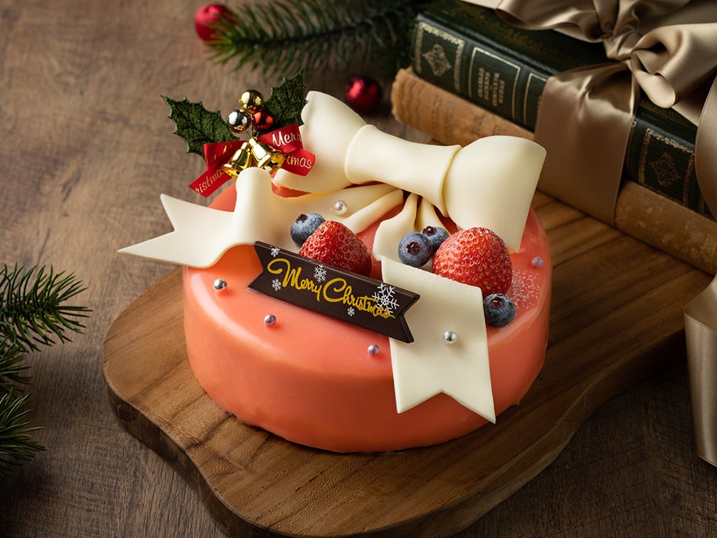 東京ドームシティの冬のテーマ「ギフト」とコラボレーションした今年の新作クリスマスケーキ。贈り物をイメージした大きなリボンと、ピンクのグラサージュが見た目にも鮮やかで可愛らしい印象に仕上がっています。