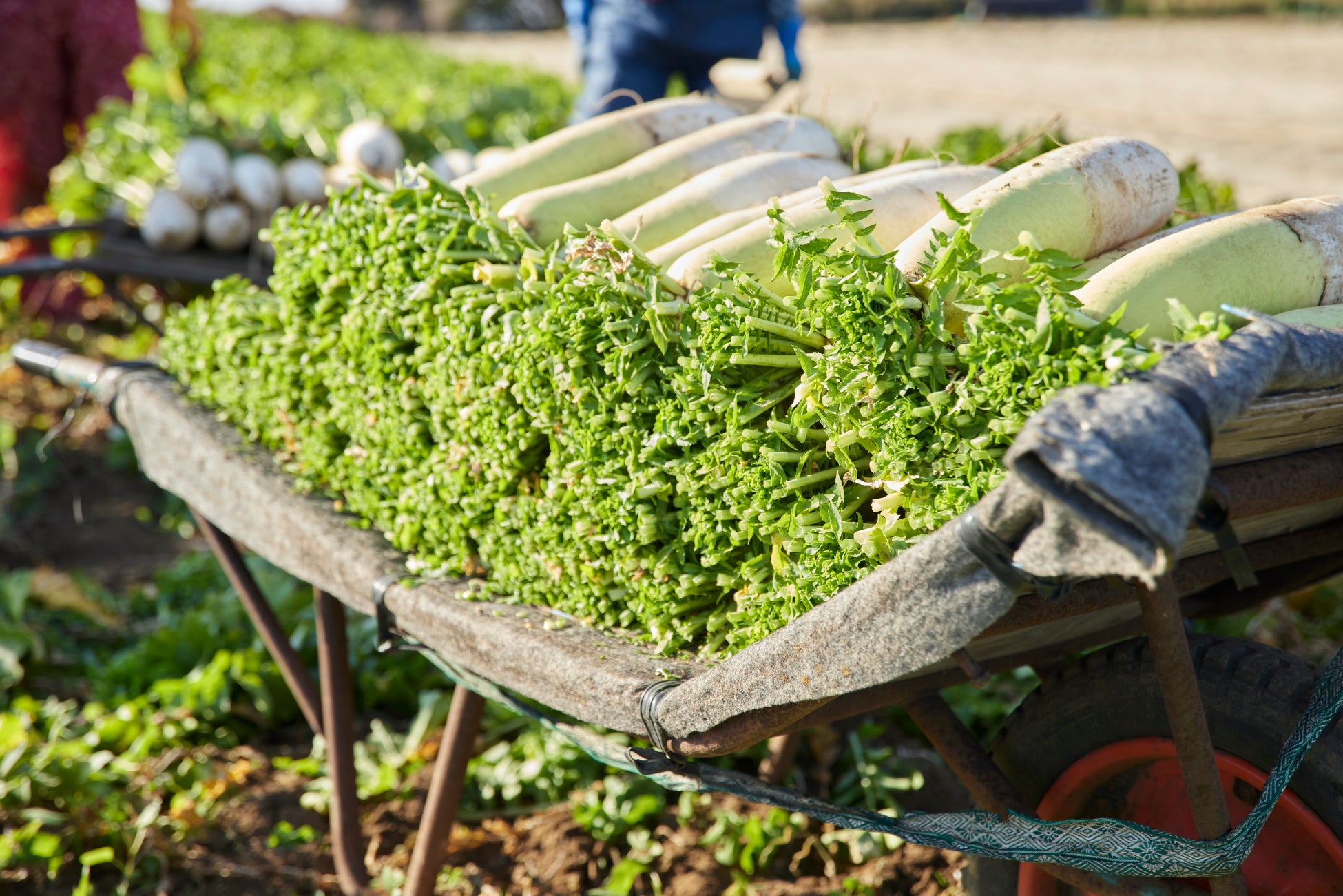 三浦野菜は冬の大根づくりに始まり、本春キャベツ、夏のスイカ、こだわりかぼちゃと季節を巡ります。海風に乗って、豊富なミネラルが運ばれる肥沃な大地と、古くは鎌倉時代から続く作り手たちの手によって、今日も安全で新鮮な、美味しいお野菜を作り続けています。