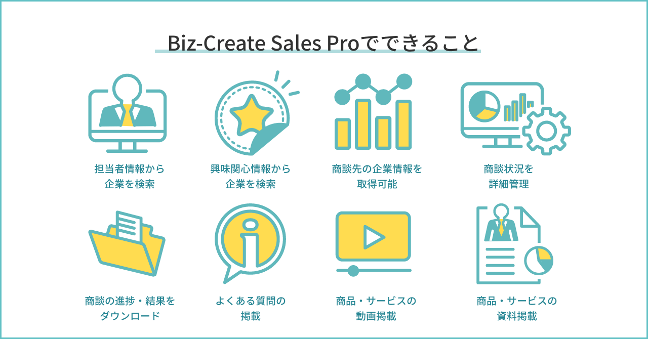 Biz-Createは既に14,000社以上のお客さまにご利用いただくサービスとなりましたが、より多くの商談が発生し、より多くの商談が成約する場となるために企業同士のマッチングのみならずその先の商談をサポートする仕組みが必要であると考え「Biz-Create Sales Pro」の提供へと至りました。