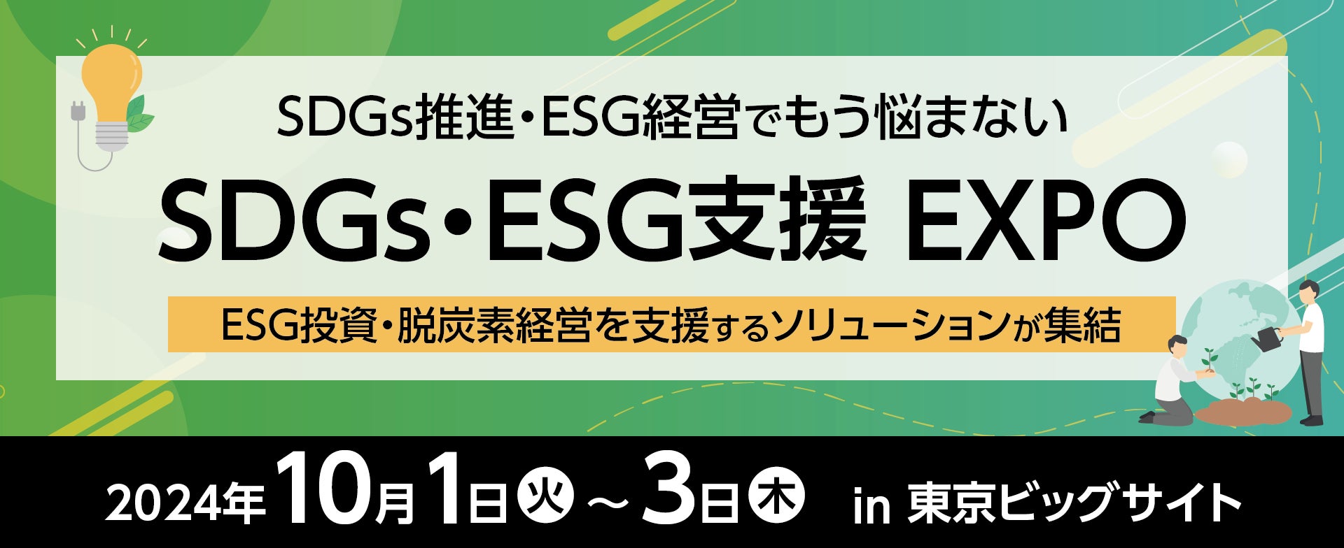 【SDGs・ESG支援 EXPO 10月1日(火)〜3日(木)】コンサル・脱炭素経営支援・省エネ設備など多様なソリューションが集結する大規模展示会を開催