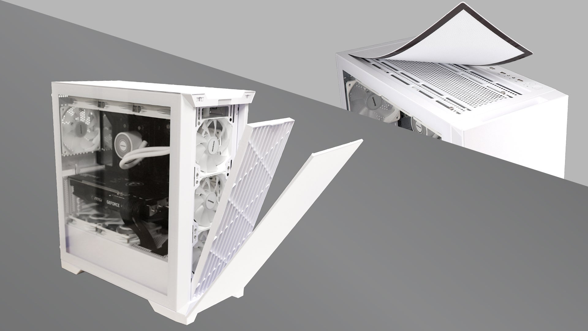 高冷却を実現することも可能です。また、上面部分にクリアランスがあるため、水冷CPUクーラー用360mmラジエーターを搭載した際にM/Bとの干渉をしにくくなっています。もちろん同時発売の水冷CPUクーラー「OWL-LCP360ARGB-WH」の取り付けも余裕を持って行うことが可能です。