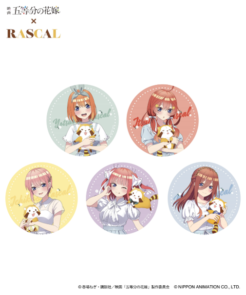 ■映画「五等分の花嫁」×ラスカル_HICUL(ハイカル)新規描きおろし_ロングスクエア缶バッジ 単品:¥600(税込価格¥660) / コンプリートセット:¥3,600(税込価格¥3,960)