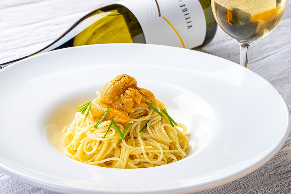 「北海道産塩水ウニの冷製スパゲティ」