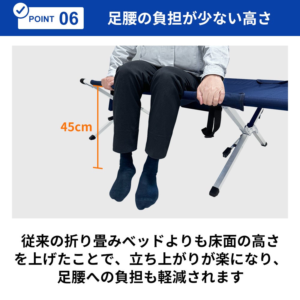 避難生活では、日を追うごとにストレスや疲労が蓄積し、心身に大きな負担がかかります。特に、安心して眠れる環境の確保は、長期避難を見据えた重要な課題です。この課題を解決するために開発されたのが、本製品「KO394 折り畳み式簡易ベッド」です。ユーザー目線に立ち、様々な方に安心してご利用いただける機能的な工夫を実装しています。