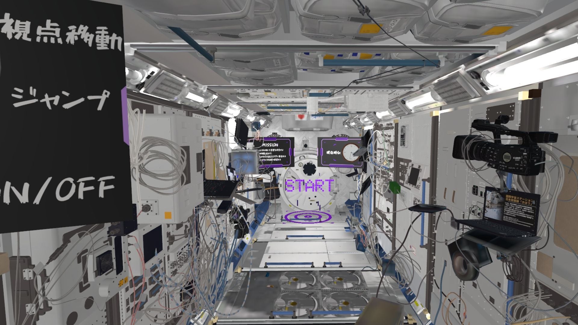 本システムは、ISSの日本実験棟「きぼう」を超高精細3Dモデリング技術で実寸大に再現したもので、学生が宇宙飛行士の視点で船内を自由に探索できるインタラクティブな教育コンテンツです。