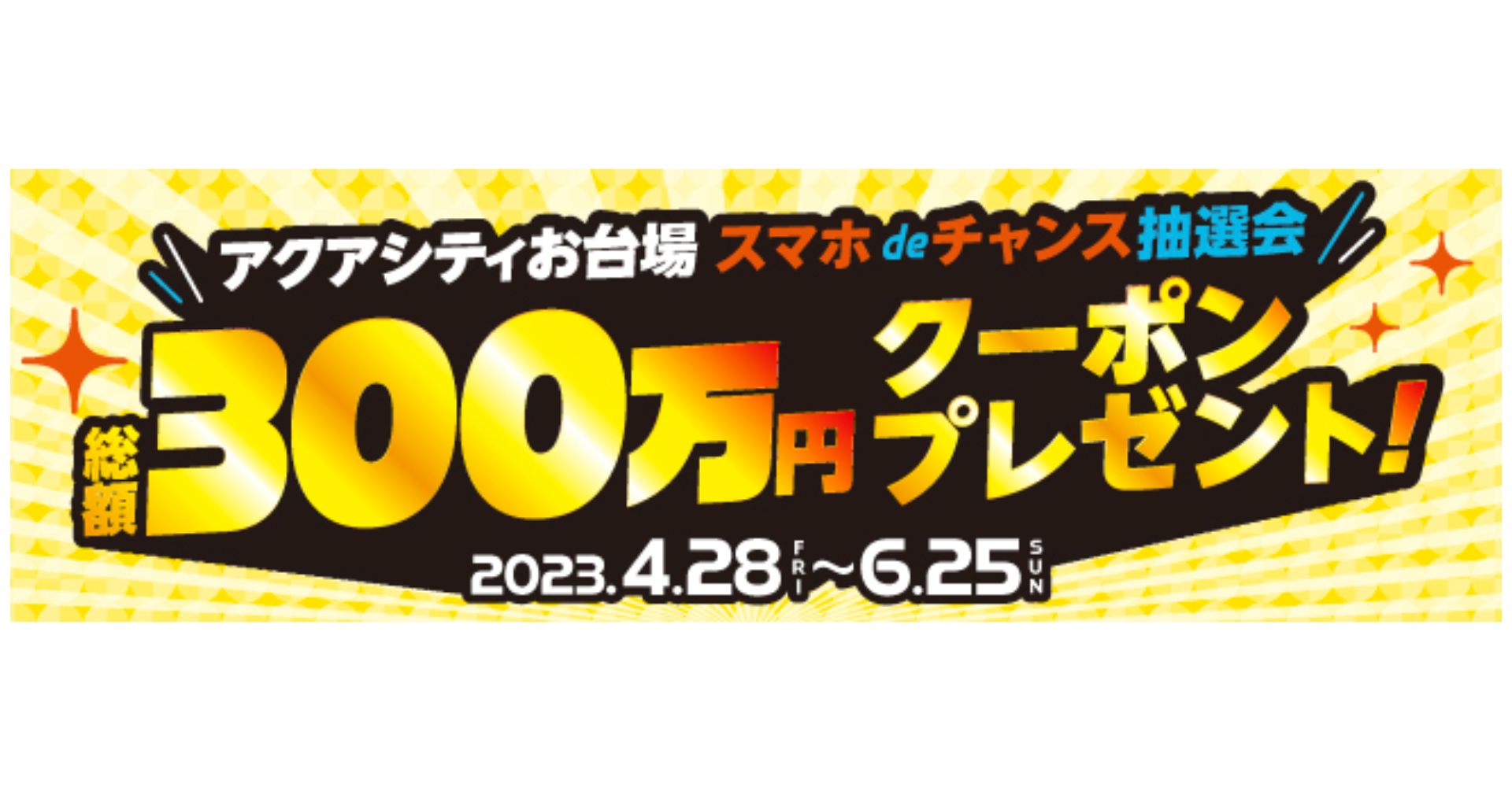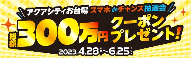 賞 品:総額300万円!アクアシティお台場で使える電子クーポン500円分(抽選)
