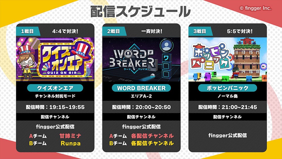 〜対抗戦は3本勝負!fingger公式チャンネルでも実況配信予定!〜