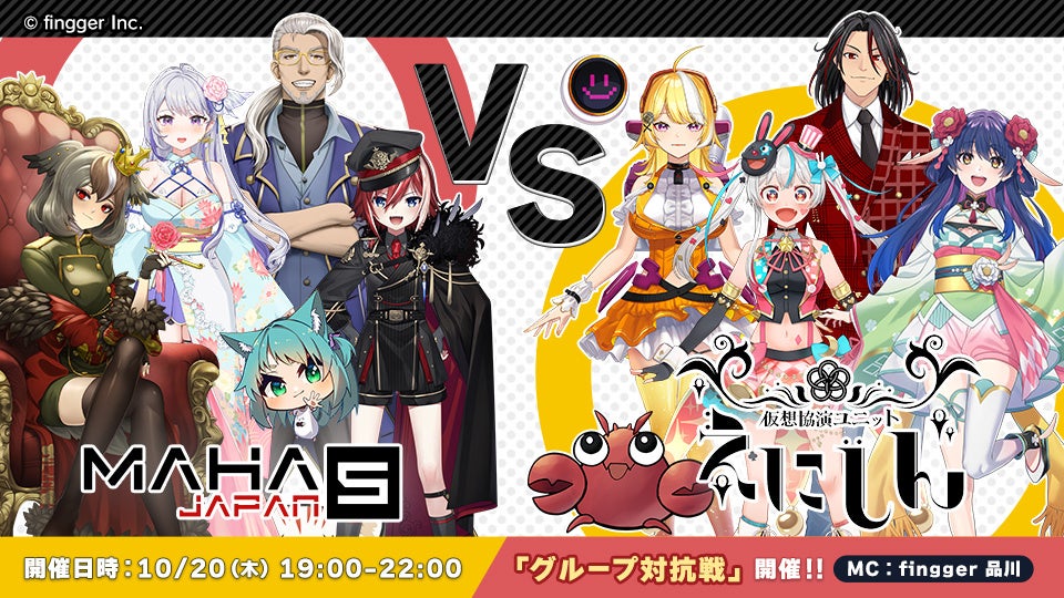 株式会社fingger(東京都品川区、代表取締役:吉江直人)は、VTuberユニット「えにしん」とVTuberグループ「MAHA5JAPAN」によるコラボレーションイベントを、2022年10月20日(木)に開催することをお知らせいたします。