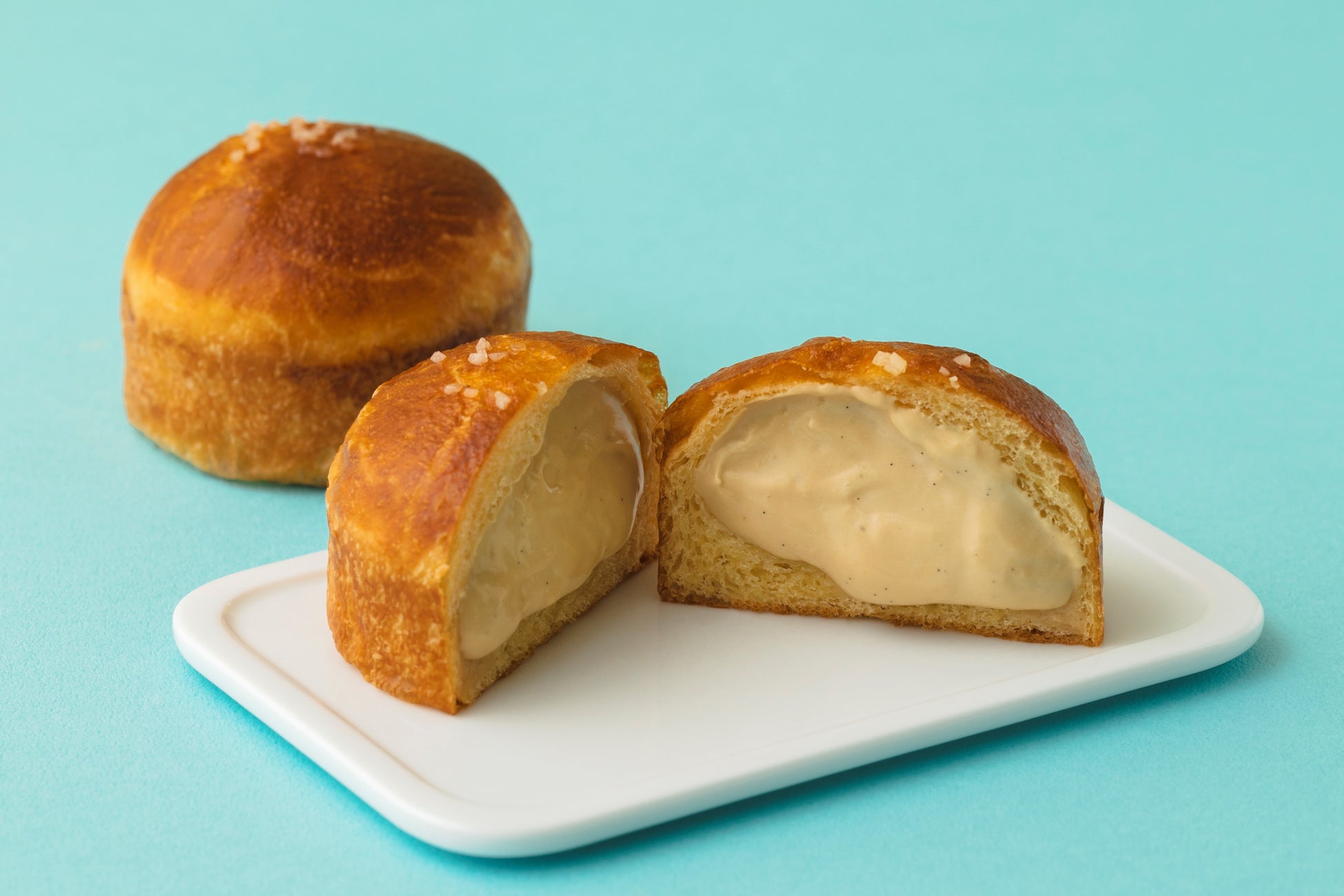 自家製のブリオッシュ生地の中にたっぷりの特製クリームを贅沢に絞りました。ブラウンシュガーを使用した生地とカスタードクリームに、ほんのりラム酒を効かせた、コクを楽しむ大人のクリームパンです。
