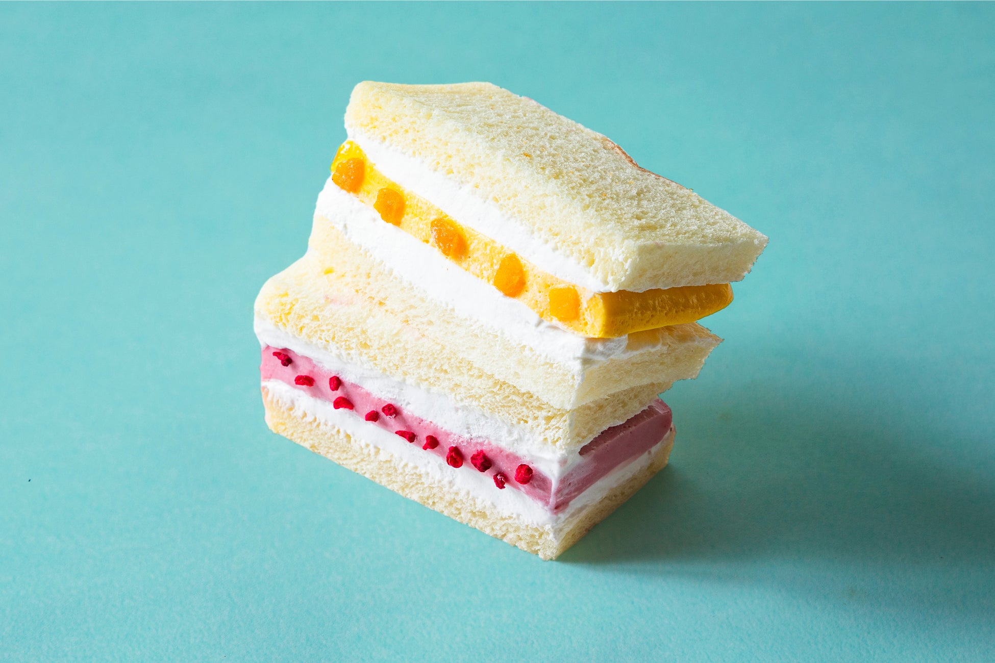 手作りのいちごとマンゴーのパンナコッタを、それぞれ生クリームで挟んだサンドイッチです。パンナコッタのとろける食感を残しながら、口当たりは軽い仕上がりが特徴です。
