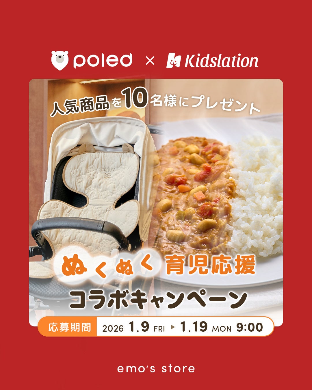 【emo’s store】Poled × KidslationとのSNSコラボ「ぬくぬく育児応援😋キャンペーン」を2026年1月9日より開催