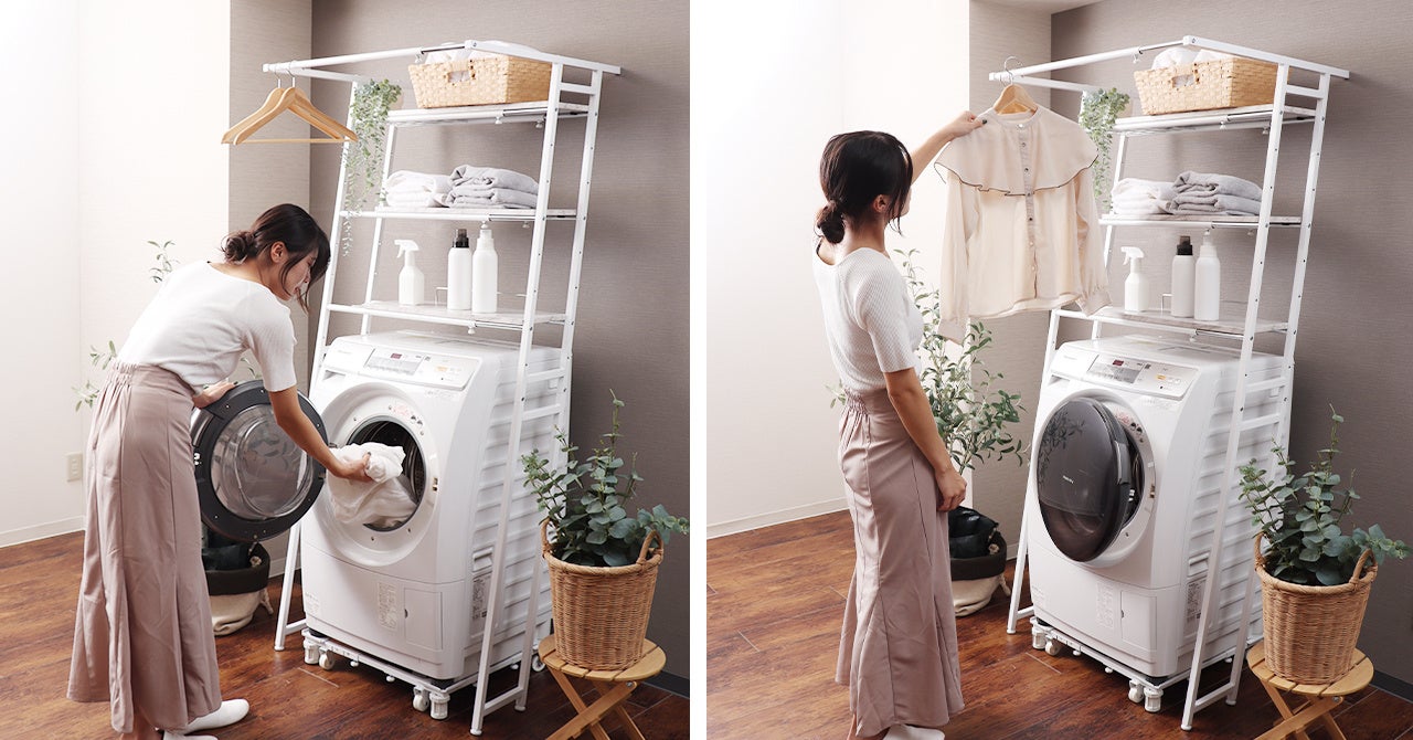 「ヤマソロ」洗濯機を動かさずに設置できる!伸縮立て掛けランドリーラックを発売