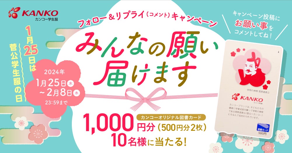 1月25日は「菅公学生服の日」「みんなの願いを届けるキャンペーン」開催 願いごとリプライすると太宰府天満宮に奉納、図書カードが当たるチャンスも!