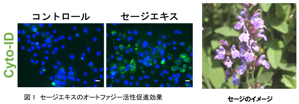 1. セージエキスに、表皮細胞におけるオートファジー活性促進効果があることを発見