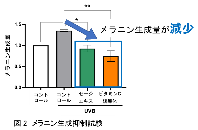 2.セージエキス及びビタミンC誘導体は、表皮細胞を介してメラニン生成を抑制