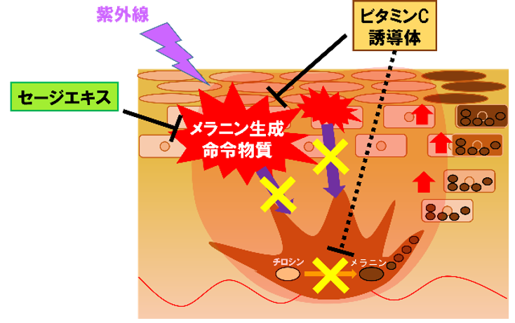 3. セージエキス及びビタミンC誘導体は、表皮細胞から放出されるメラニン産生促進因子を抑制