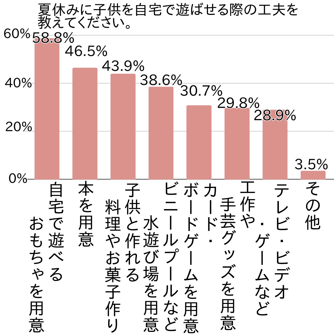 アンケートでは次に、夏休みに子供を自宅で遊ばせる際の工夫について尋ねました。