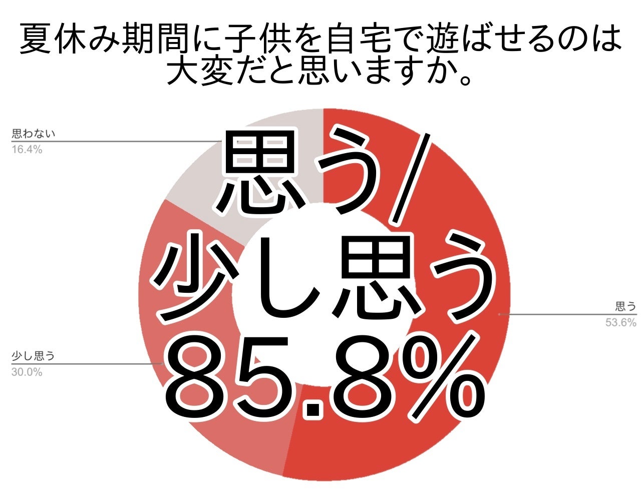 アンケートでは、夏休み期間に子供を自宅で遊ばせるのは大変だと思うか尋ねてみました。