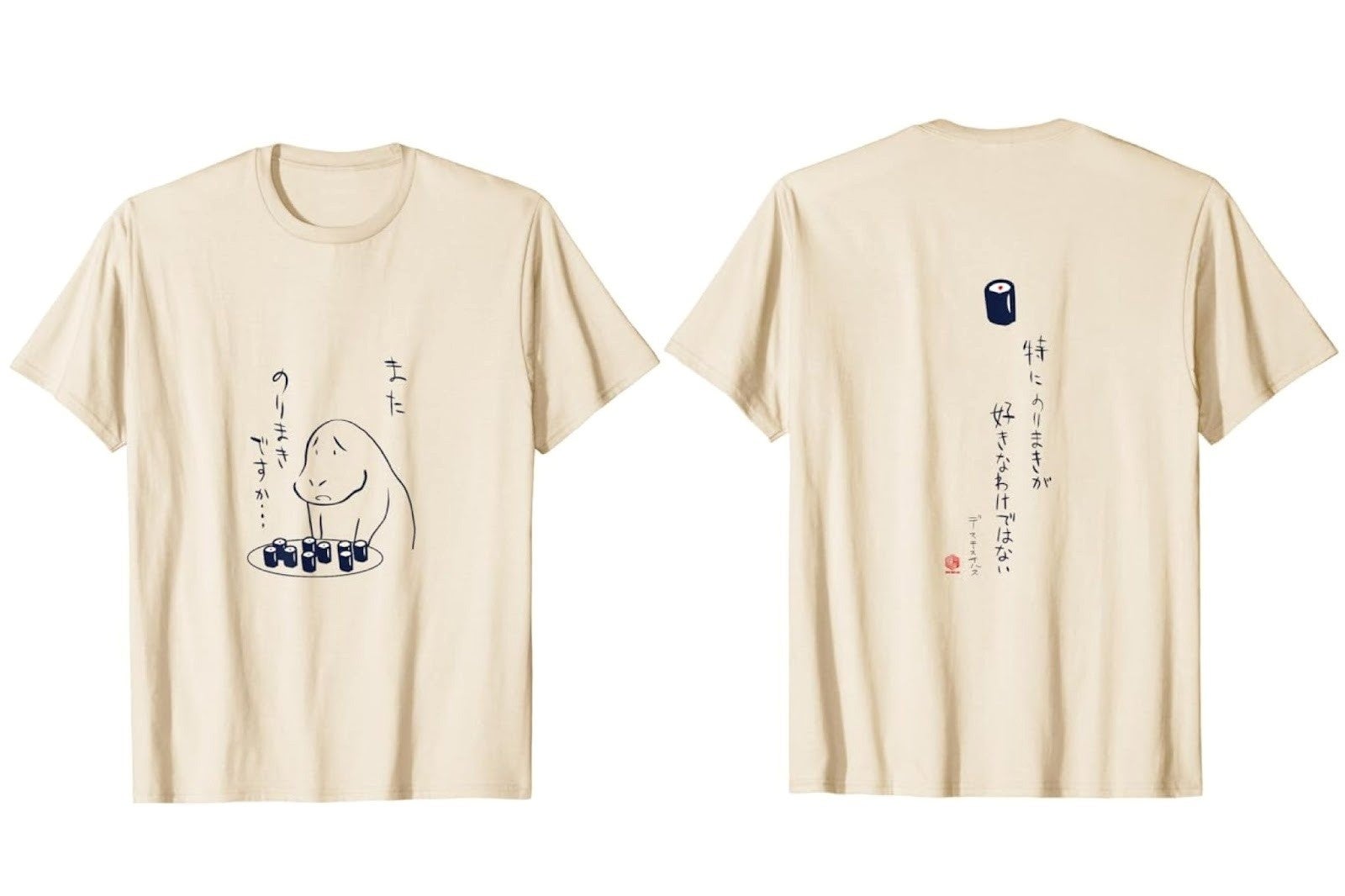 教科書で「海苔巻きを束ねたような奇妙な歯を持つ」と紹介される、絶滅哺乳類デスモスチルス。何を食べたかよくわかっていない彼らの、ちょっと哀愁漂う食卓をユーモラスに描いた一枚。古生物ファンの“通”な笑いをまといたい、そんなあなたにおススメです。