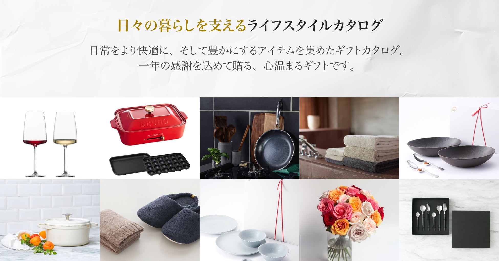 日常をより快適に、そして豊かにするアイテムを集めたギフトカタログ。一年の感謝を込めて贈る、心温まるギフトです。荷物になってしまうようなキッチン家電や雑貨などもURLやカードで簡単にお渡しいただけます。商品を取り寄せて保管する必要もありません。