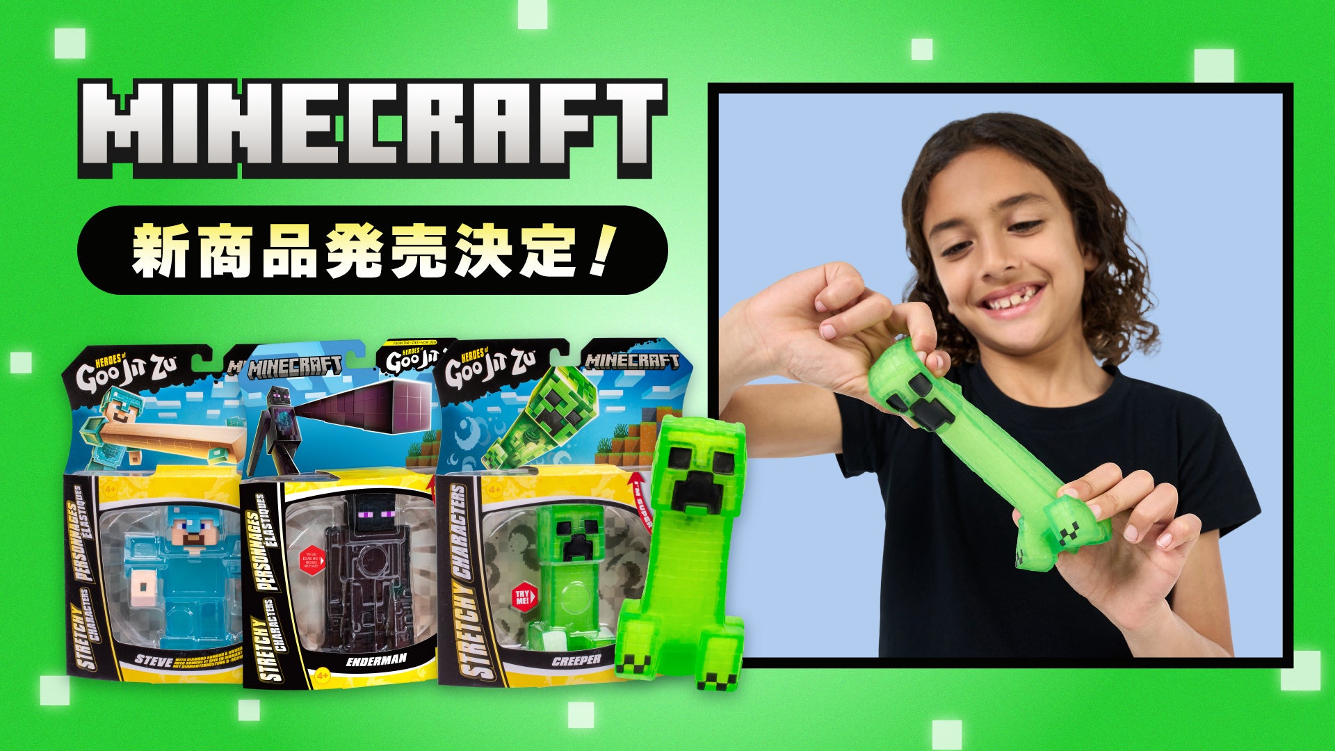 マイクラの人気キャラがグニグニ動く!大人気ゲーム『マインクラフト』より、「GOO JIT ZU」のフィギュアが登場!