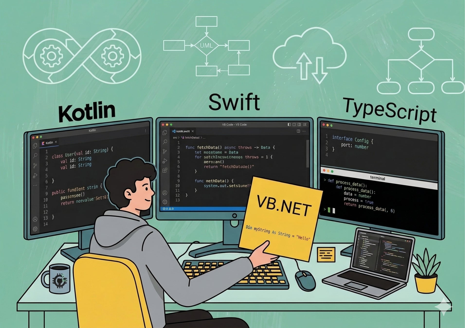 いずれも既存システムをお客様の運用に合わせて改修する、実務直結の受託開発案件です。使用した言語はSwift・Kotlin・TypeScript・Python・VB.NETの5言語にのぼります。