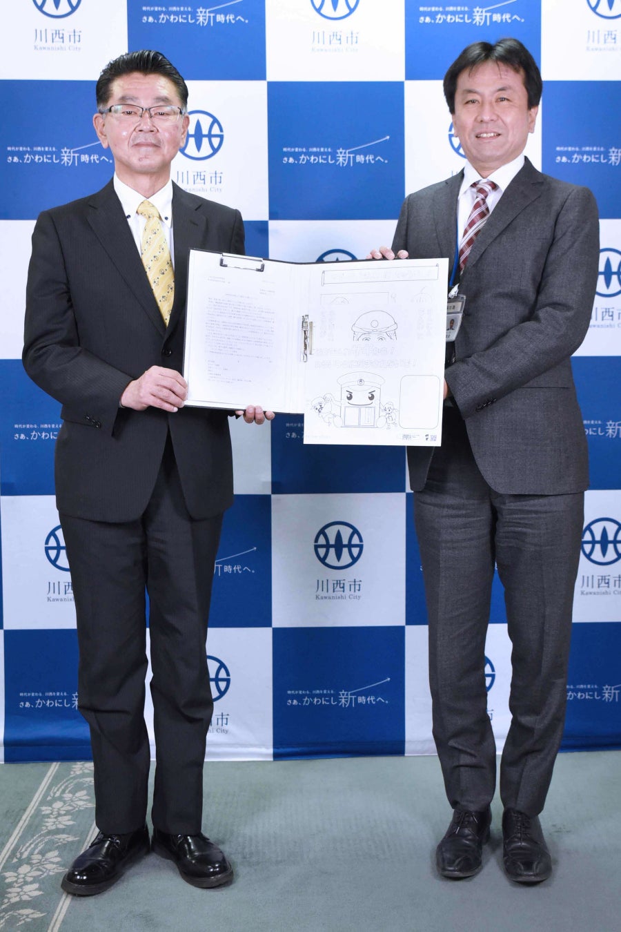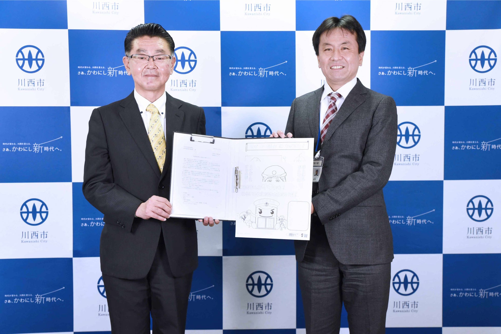 令和5年3月28日、川西警察が作成した啓発ぬりえを川西市教育委員会を通じて市立幼稚園、保育所、認定こども園へ配布することで、園児から親族等へ特殊詐欺被害防止の注意喚起をすることを趣旨とし、川西市教育委員会と兵庫県川西警察署は、「啓発ぬりえの配布依頼にかかる協力依頼式」を執り行った。