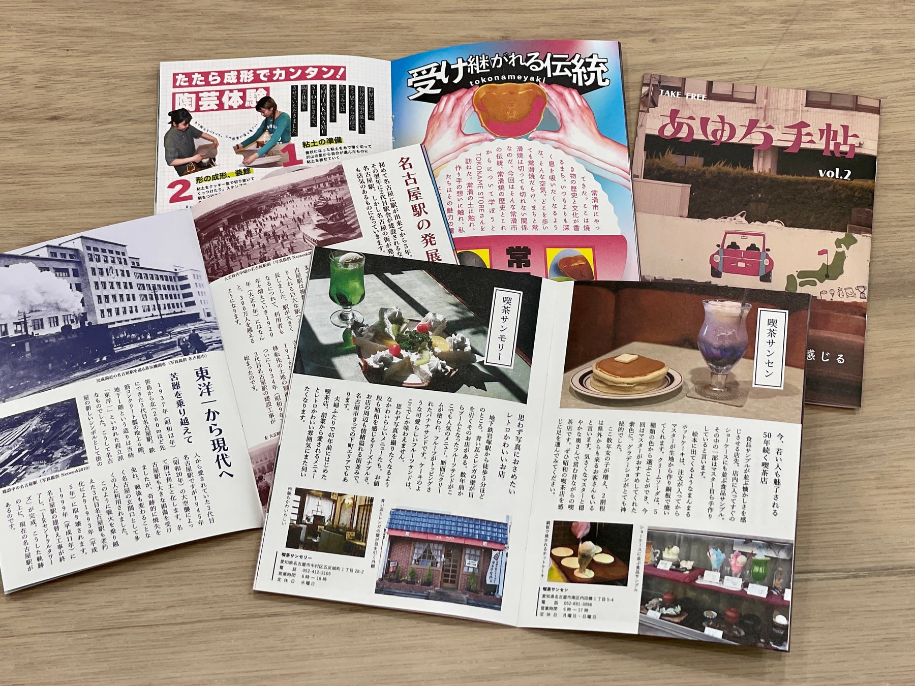 第2号の特集は喫茶店、常滑焼、名古屋駅。同世代の若い世代をターゲットに周辺地域の歴史や文化を魅力的に発信しており、本学および市内各所で配付中です。