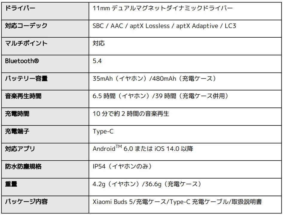 小米技術日本株式会社(以下「シャオミ・ジャパン」、本社:東京都港区、取締役社長:大沼 彰)は、ノイズキャンセリング搭載のインナーイヤー型完全ワイヤレスイヤホン「Xiaomi Buds 5」を2024年10月10日(木)より日本で販売を開始します。市場想定価格は11,480円(税込)です。
