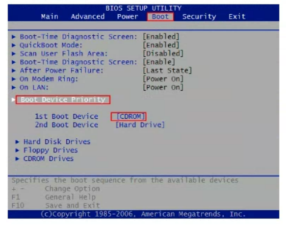 Step7:キーボードの「F12」または「ESC」を押して、ブートメニューに入り、矢印キーを使用して挿入されたディスク名を確認します。次に、「F10」を押して保存して終了します。起動メニューが表示されたら、起動デバイスを選択して、「Enter」キーを押します。